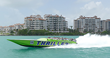 Cruise along the Miami Coastline aboard Thriller Miami Speedboats.